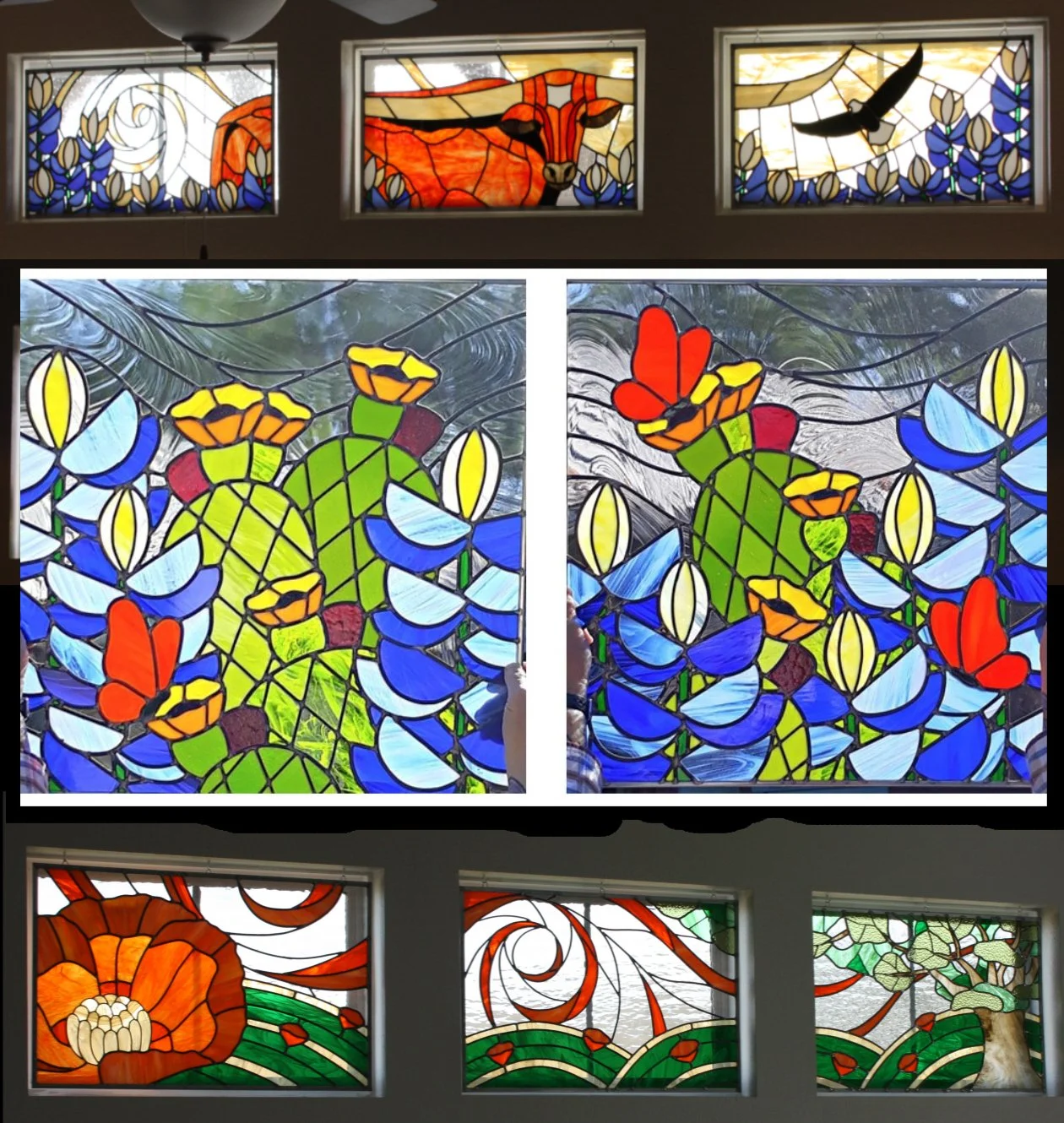 My most recent public arts commission is a tri-panel stained glass installation at the San Marcos Public Library honoring internationally recognized artist, Bill Hutson. It was commissioned by the San Marcos Arts Commission during my tenure as co-owner of River City Glassworks.